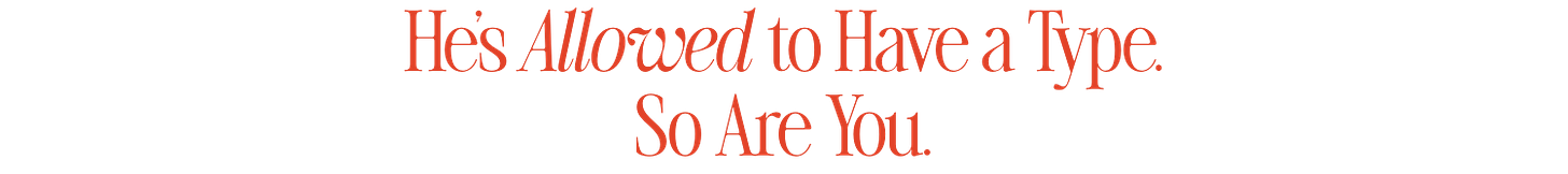 We don’t talk about this enough because it feels like a slight. its like admitting he has a type is admitting you’re less than. But think about it from your own experience: